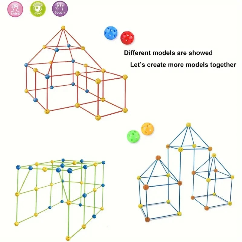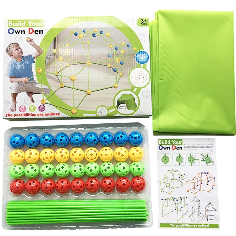 Pretvorite dječiju maštu u stvarnost! Ovaj set za gradnju kućica i tvrđava omogućava djeci da sami kreiraju različite oblike – od šatora i tunela do zamkova i igloo kućica. Samo prekrij konstrukciju čaršafom ili plahtom i zabava može da počne!